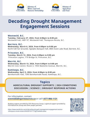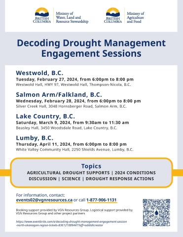 The Ministry of Water, Land and Resource Stewardship is hosting the following drought management workshops: